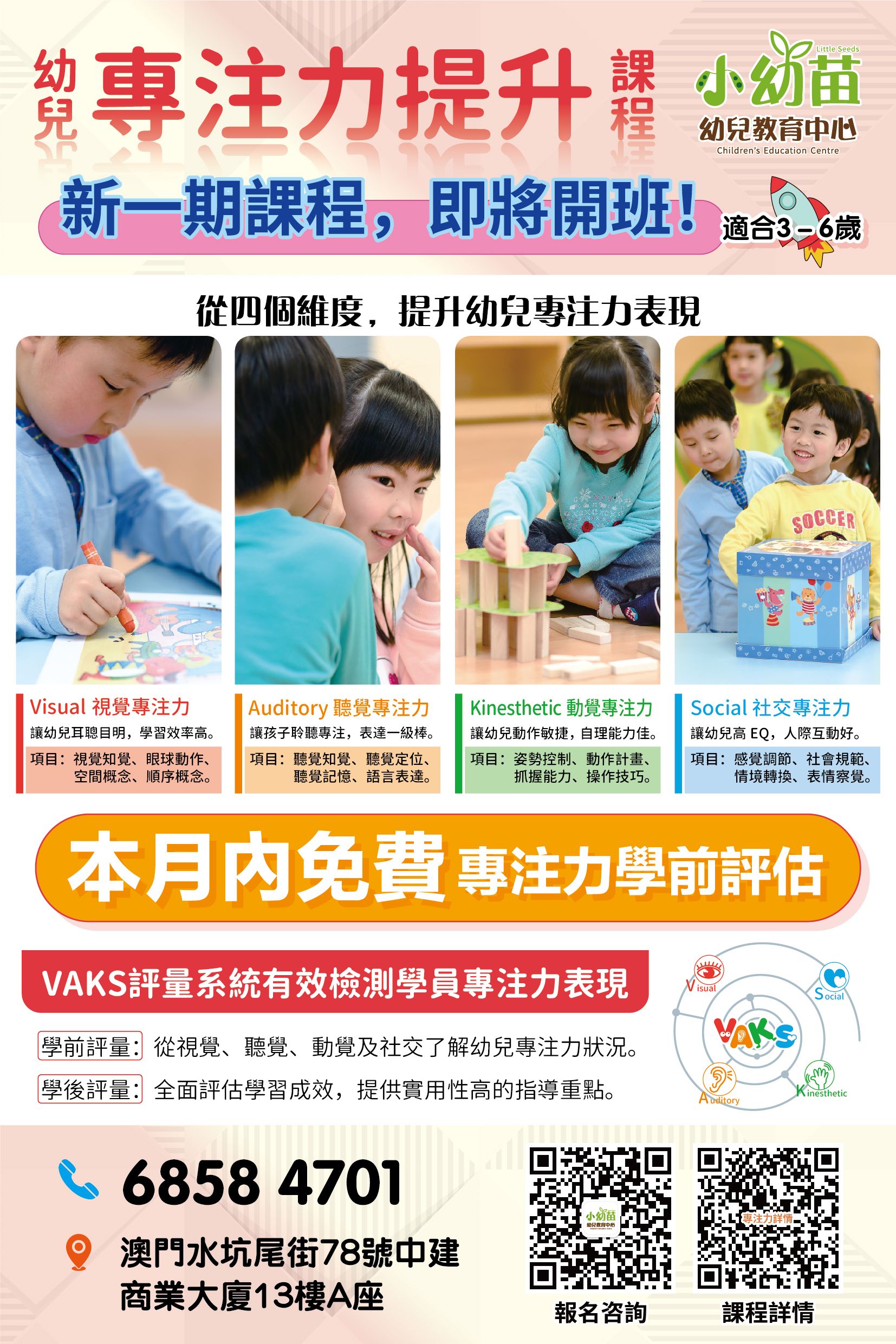 🌱如果擔心小朋友專注力唔夠,可以試下適合3-6歲小朋友的專注力提升課程,課前特設🆓免費【專注力學前評估】,幫助👨👩家長從四個維度測試幼兒嘅專注力表現!